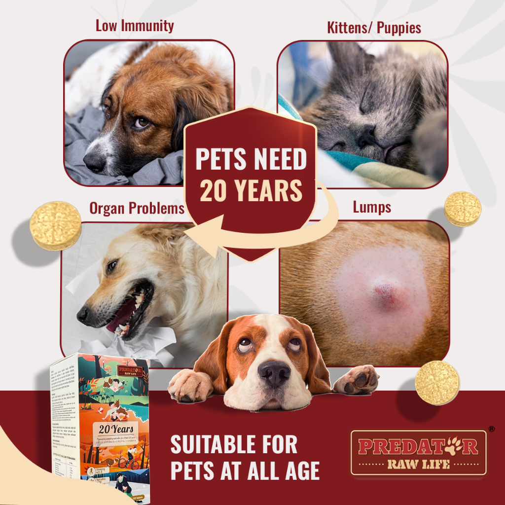- Perfect for All Life Stages: Whether your pet is a young puppy or kitten with a developing immune system, an adult with organ problems, or a senior dog with health issues, 20 Years is designed to provide comprehensive support for pets of all ages and health conditions.