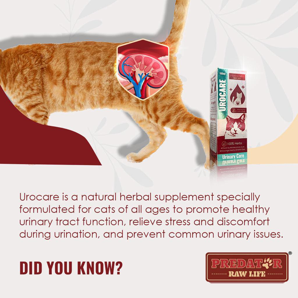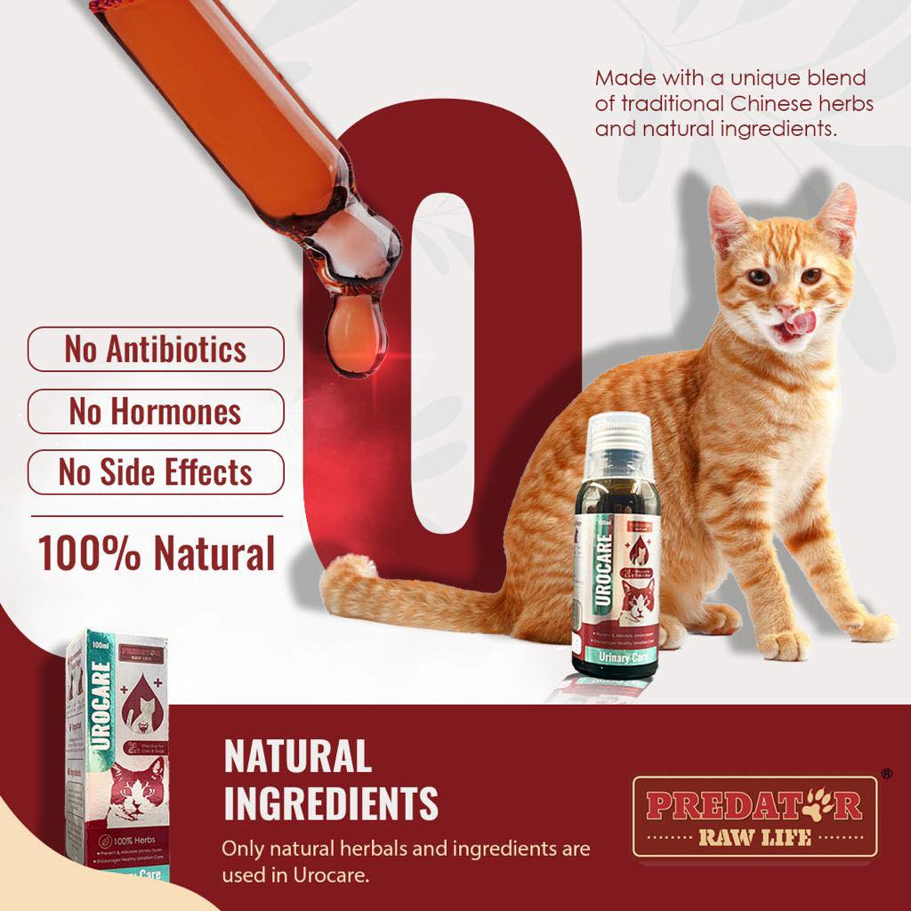 Urocare is a natural herbal supplement specially formulated for cats of all ages to promote healthy urinary tract function, relieve stress and discomfort during urination and prevent common urinary issues such as urinary tract infections, urinary stones, urinary obstruction, inflammation and bladder infections.
